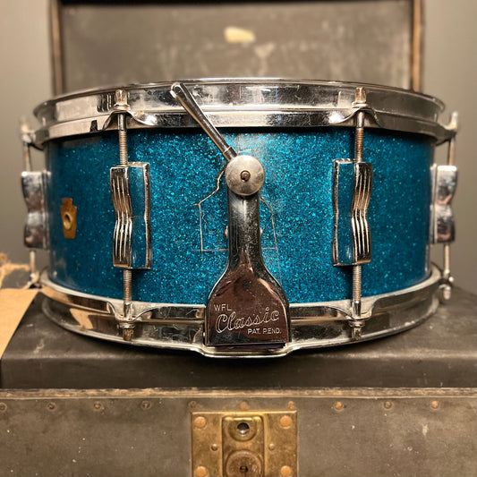 VINTAGE 1950's WFL 5.5x14 Super Classic Snare Drum in Blue Sparkle