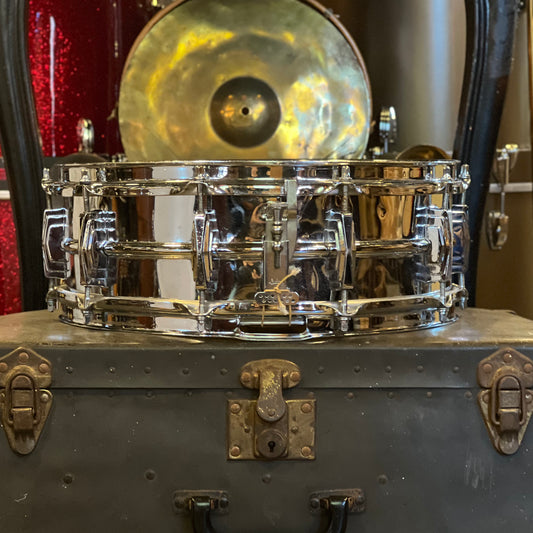 VINTAGE 1960 Ludwig Pre-Serial 5x14 Super Ludwig Chrome over Brass Snare Drum