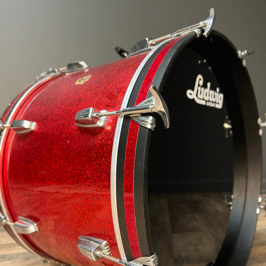 VINTAGE 1960 Ludwig 14x20 Transition Badge Bass Drum in Red Sparkle