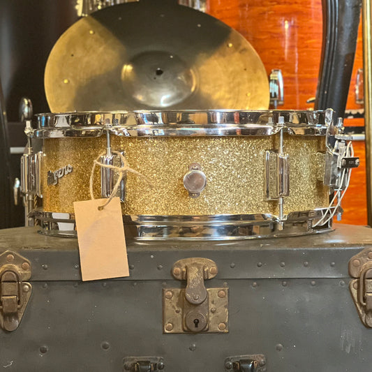 VINTAGE 1960's Rogers 5x14 Luxor Snare Drum in Gold Sparkle