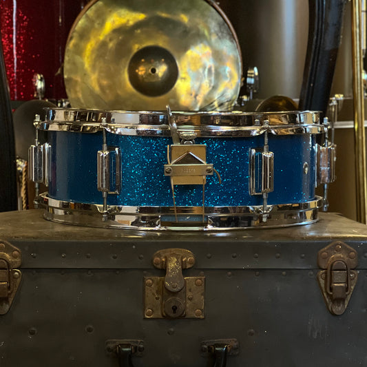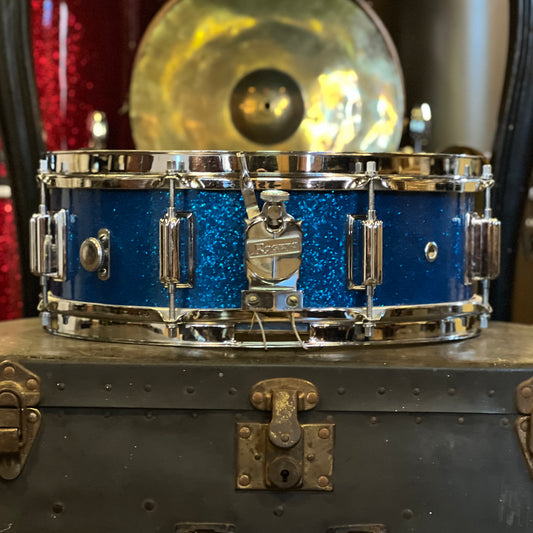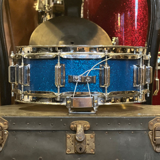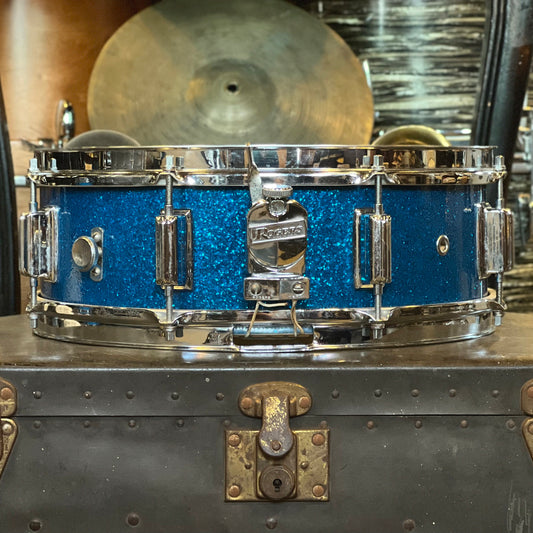 VINTAGE 1960's Rogers 5x14 Cleveland Era Luxor Snare Drum in Blue Sparkle