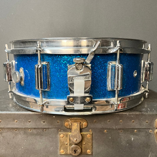 VINTAGE 1960's Rogers 5x14 Powertone Snare Drum in Blue Sparkle