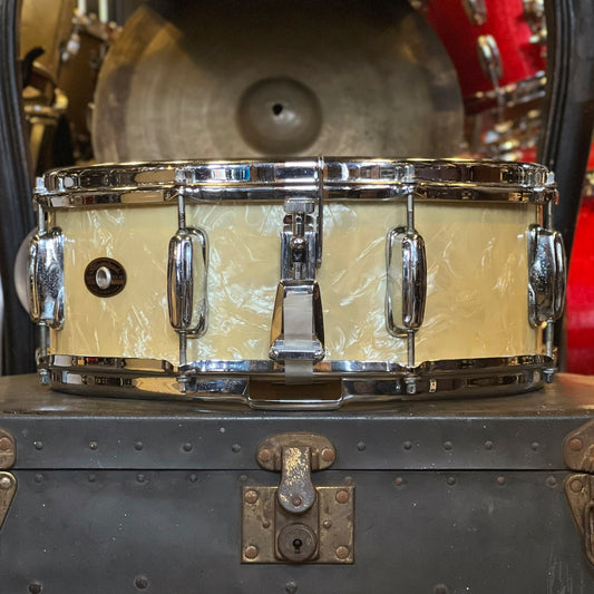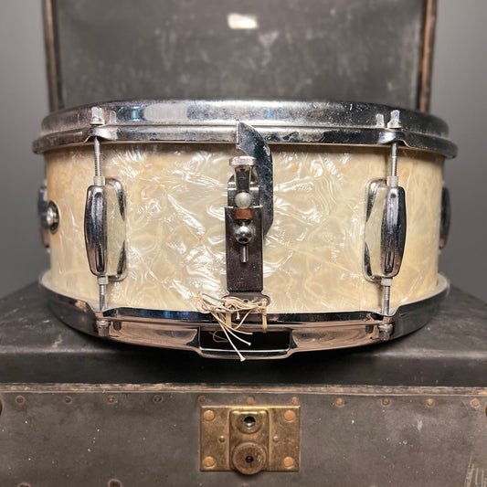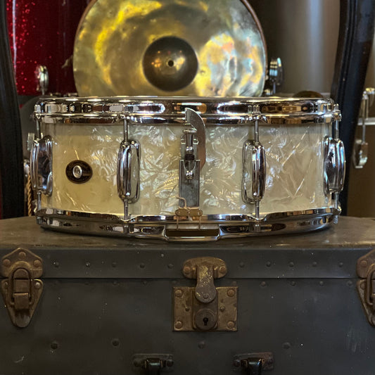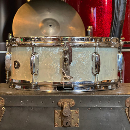 VINTAGE 1960's Slingerland 5x14 Artist Model Snare Drum in White Marine Pearl
