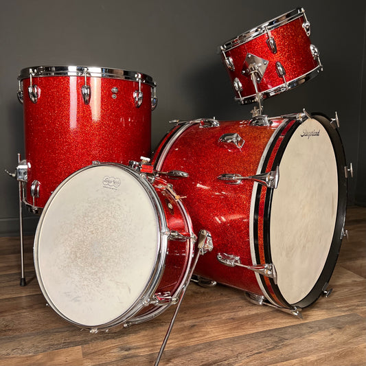 VINTAGE 1960's Slingerland Modern Jazz Outfit in Red Sparkle - 14x20, 8x12, 14x14
