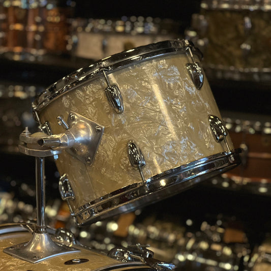 VINTAGE 1960's Slingerland Gene Krupa Outfit in White Marine Pearl w/ Model 130 Snare Drum & Original Hardware - 14x22, 9x13, 16x16, 5x14