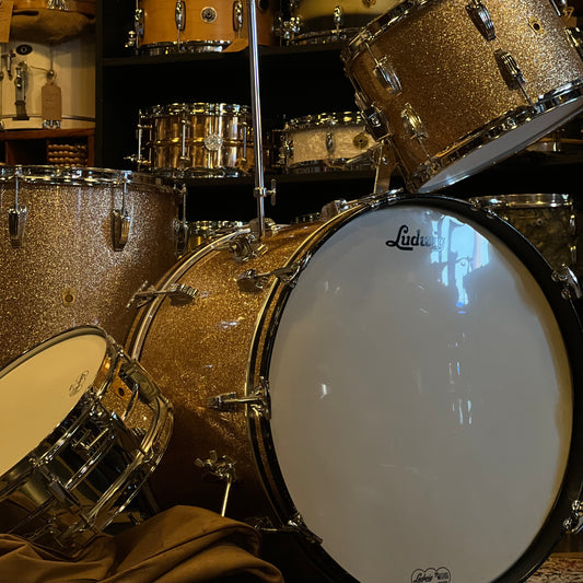VINTAGE 1965-1966 One-Owner Ludwig Super Classic Outfit in Gold Sparkle w/ Supraphonic & Hardware - 14x22, 9x13, 16x16, 5x14