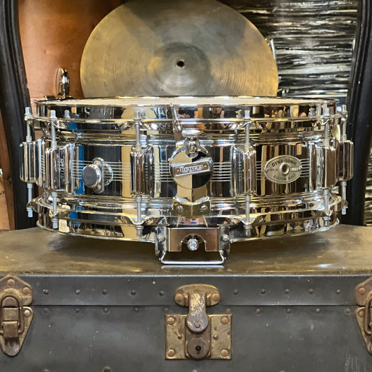 VINTAGE 1963-1967 Rogers 5x14 7-Line Dynasonic Chrome over Brass Snare Drum