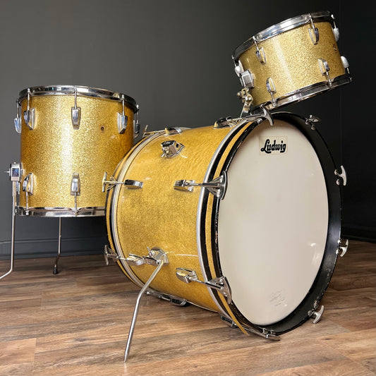 VINTAGE 1968 Ludwig No. 988 "Downbeat" Outfit in Gold Sparkle - 14x20, 8x12, 14x14
