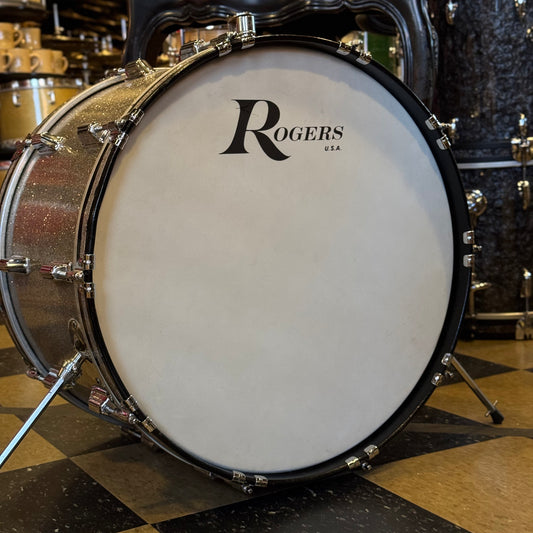 VINTAGE 1970's Rogers 14x22 Silver Sparkle Bass Drum