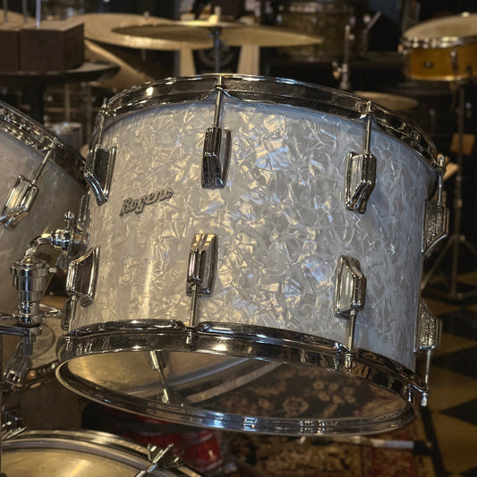 VINTAGE 1970's Rogers Fullerton Era Rock Outfit in White Marine Pearl - 14x26, 10x14, 12115, 16x18