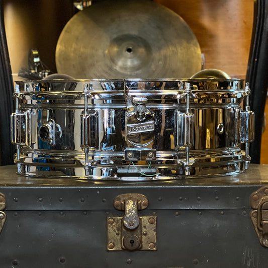 VINTAGE 1970's Rogers 5x14 Chrome over Brass Big R Power Tone Snare
