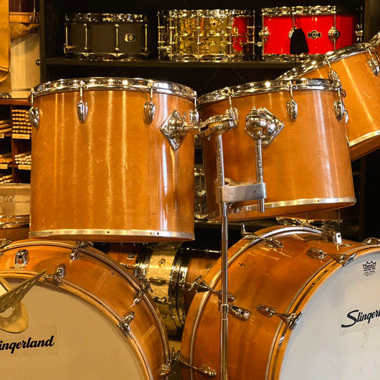 VINTAGE 1970s Slingerland Double Bass Concert Tom Outfit in Natural Stain - 26,26,13,14,15,16,20