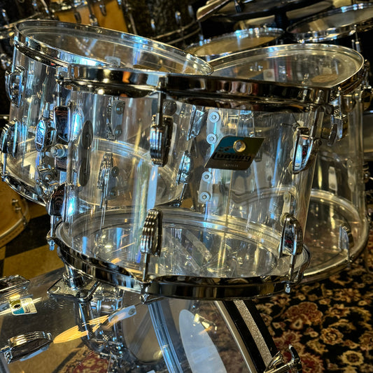 VINTAGE 1978-84 Ludwig Vistalite Sound Projector Two in Clear Acrylic - 14x22, 9x10, 11x12, 12x13, 13x14, 16x16
