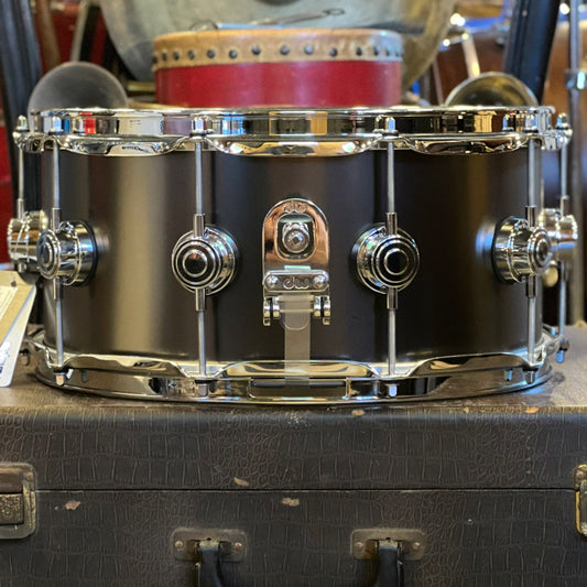 NEW DW 6.5x14 Collector's Satin Black over Brass Snare Drum with Chrome Hardware