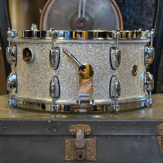NEW Gretsch Broadkaster 6.5x14 Snare Drum in Silver Glass Glitter w/ Micro-Sensitive Throw-Off & 301 Hoops