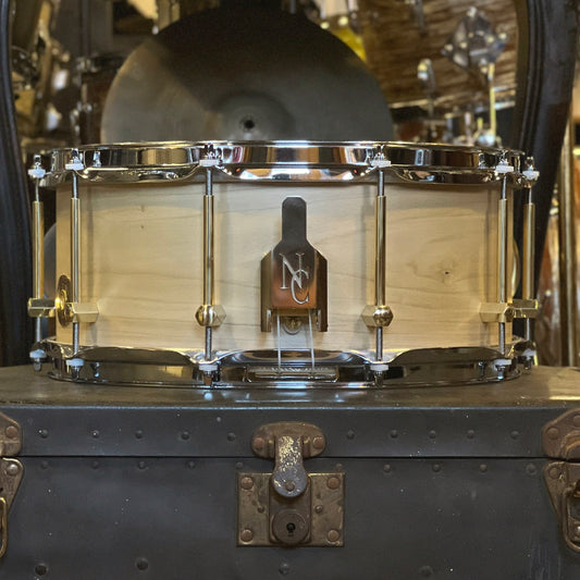 NEW Noble & Cooley 7x14 Solid Shell Beech Snare Drum in Natural Satin w/ Brass Hardware & Black Chrome Hoops