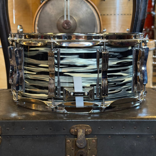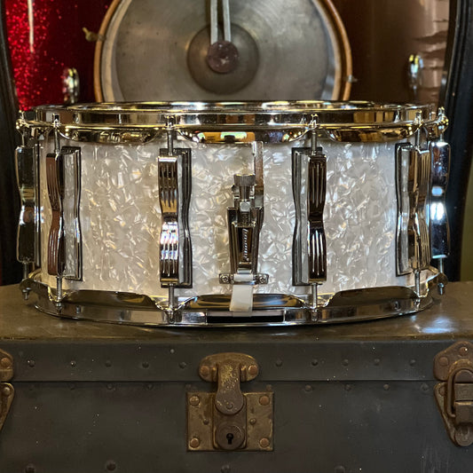 USED 1990's Ludwig 6.5x14 Monroe Badge Classic Snare Drum in White Marine Pearl