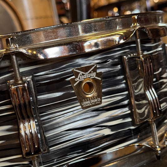 USED 1990's Ludwig 5.5x14 Monroe Badge Classic Snare Drum in Black Oyster