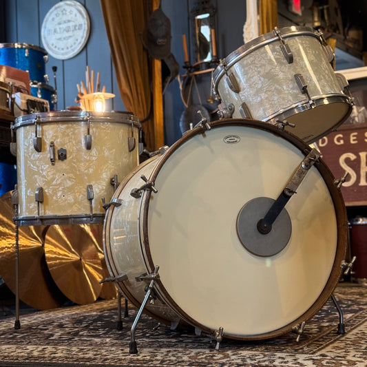 VINTAGE 1948-50 Leedy "Bop" Outfit in White Marine Pearl - 14x20, 9x13, 12x15