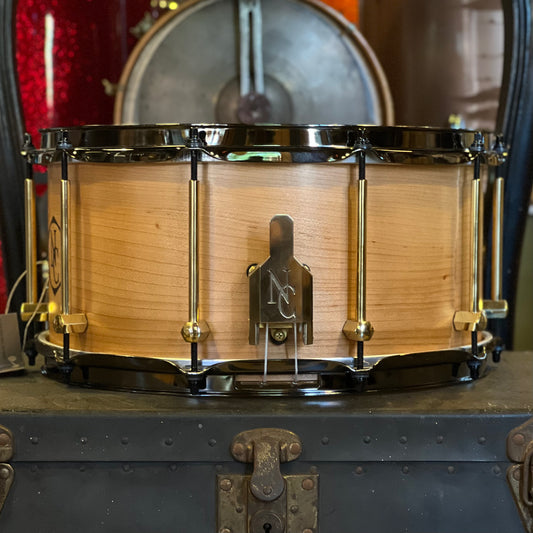 NEW Noble & Cooley 7x14 Solid Shell Beech Snare Drum in Natural Satin w/ Brass Hardware & Black Chrome Hoops