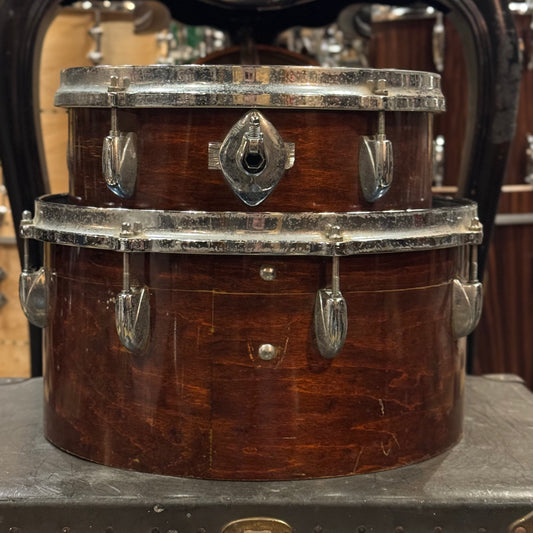 VINTAGE 1970's Professional Drum Shop 12" and 14" Cut Down Toms in Walnut Lacquer