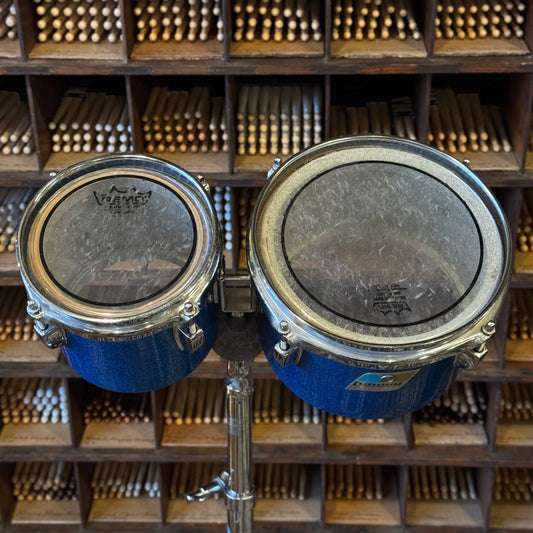 VINTAGE 1970's Ludwig Blue & Olive Badge Concert Toms in Blue Sparkle - 6" & 8"