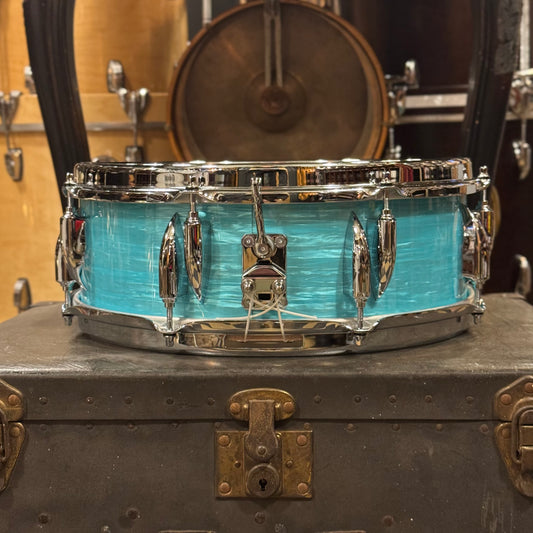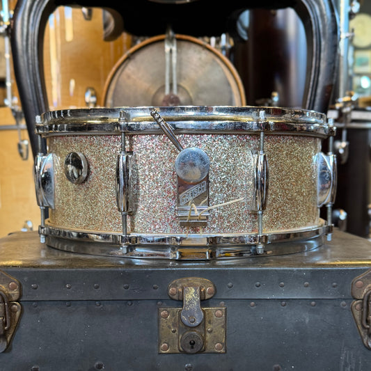 VINTAGE 1954-1957 Gretsch 5.5x14 Round Badge "Name Band" 3ply Snare Drum in Peacock Sparkle