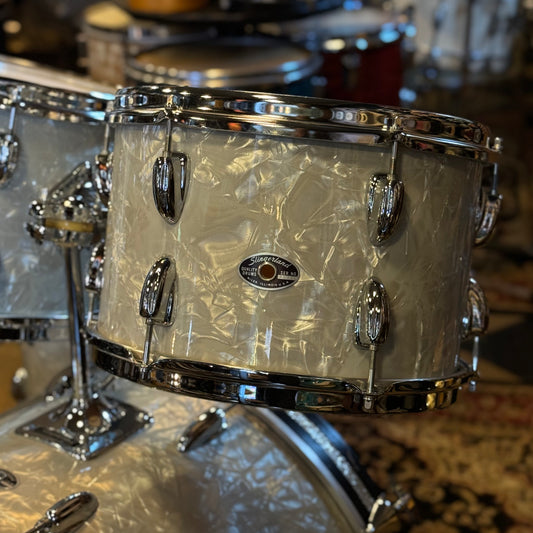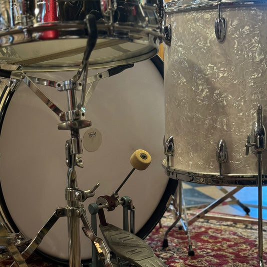 VINTAGE 1960's Slingerland Gene Krupa Outfit in White Marine Pearl w/ Model 130 Snare Drum & Original Hardware - 14x22, 9x13, 16x16, 5x14