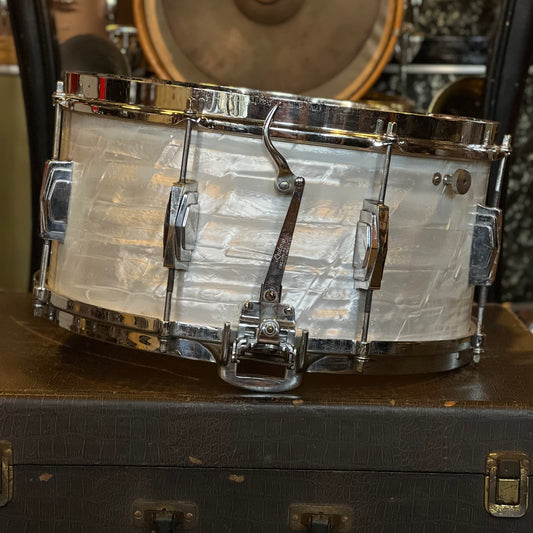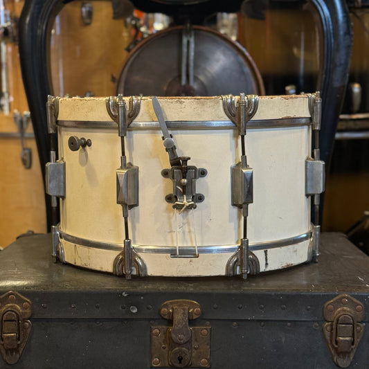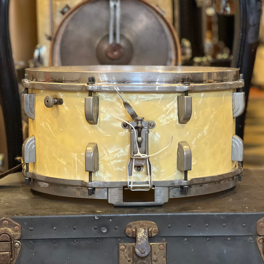 VINTAGE 1940's Lefima 8x14 Snare Drum in White Marine Pearl