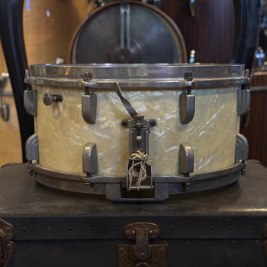 VINTAGE 1949 Leedy 6.5x14 Broadway Standard 3ply Snare Drum in White Marine Pearl