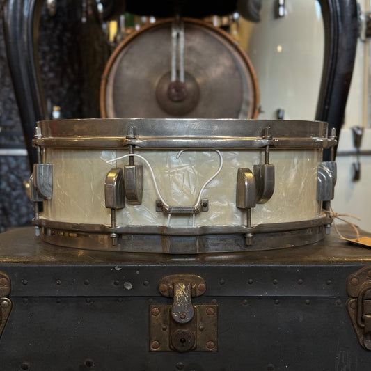 VINTAGE 1953 Leedy & Ludwig 4.5x14 New Era in White Marine Pearl