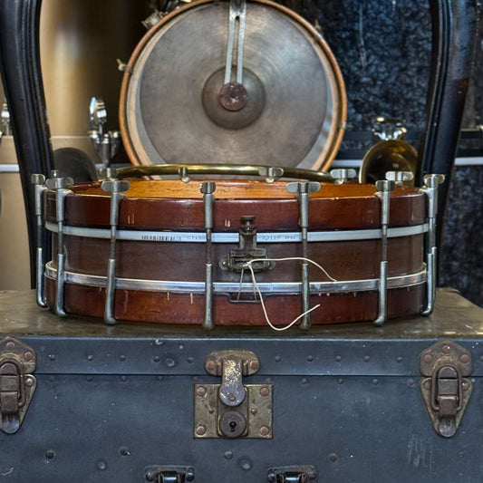 VINTAGE 1920's John Grey & Sons 6x14 Orchestral Model Snare Drum - Mahogany Lacquer w/ Brass Hardware