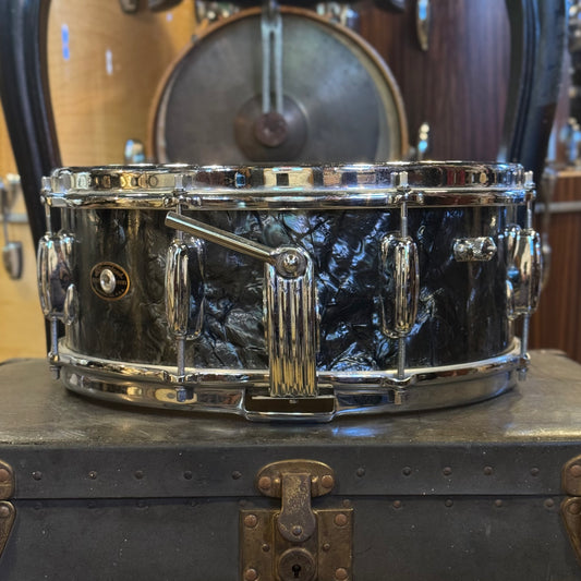VINTAGE 1960's 5.5x14 Slingerland Radio King Gene Krupa Model in Black Diamond Pearl