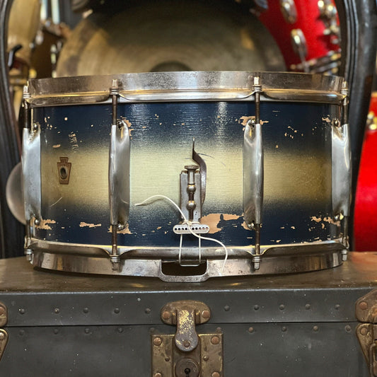VINTAGE 1958 Leedy 5.5x14 Snare Drum in Blue & Silver Duco