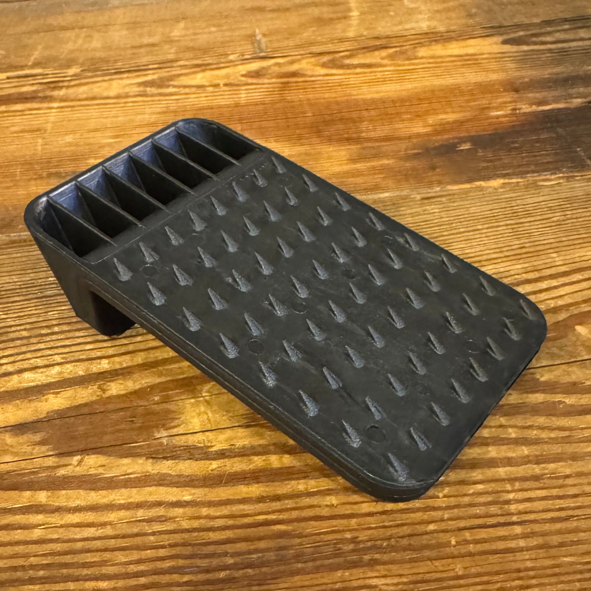 Brilliantly simple solution to bass drum creep - angled spikes dig into any style rug to keep your bass perfectly in place.