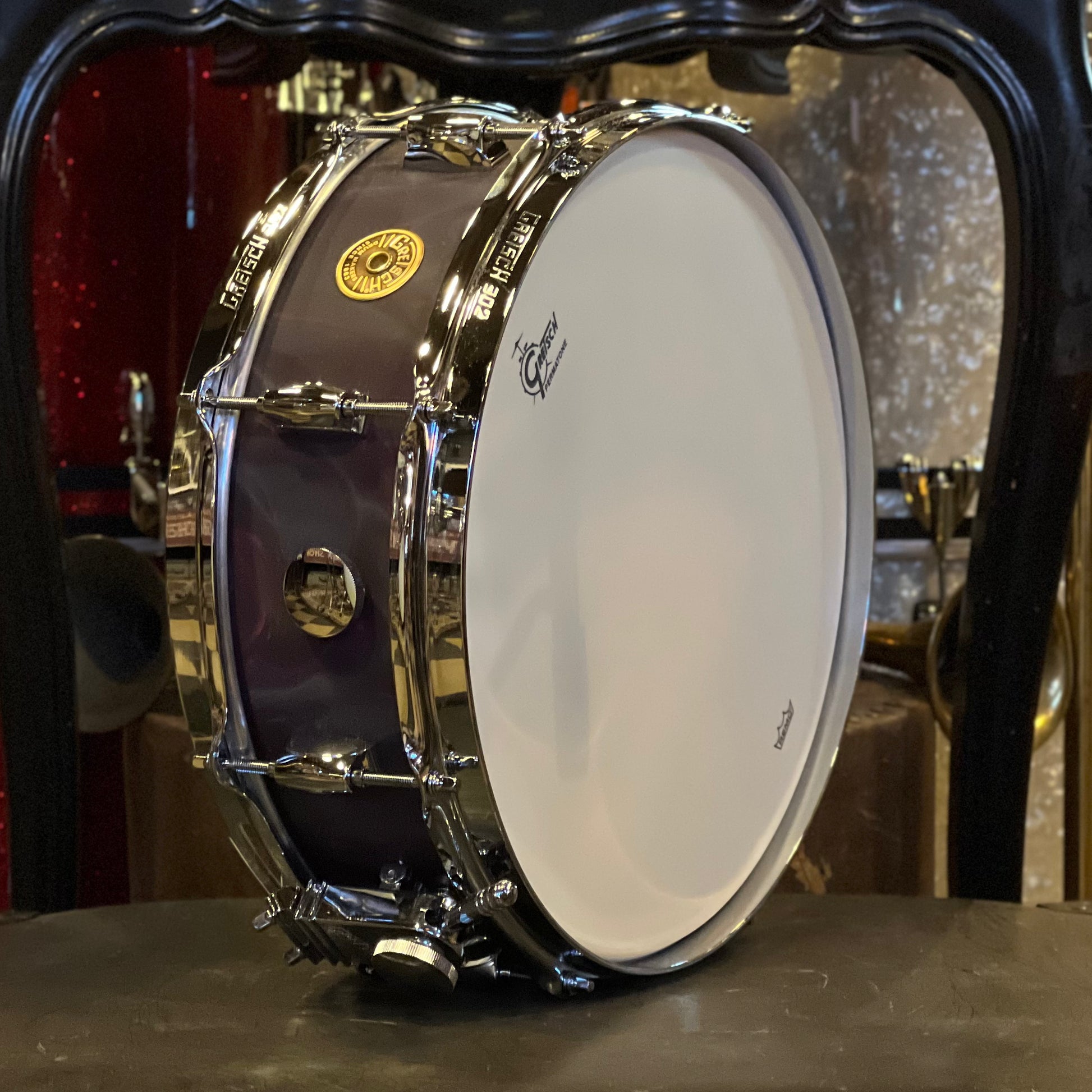 NEW Gretsch 4.5x14 Broadkaster Snare Drum in Black Satin Flame with Tone Control & Micro Sensitive