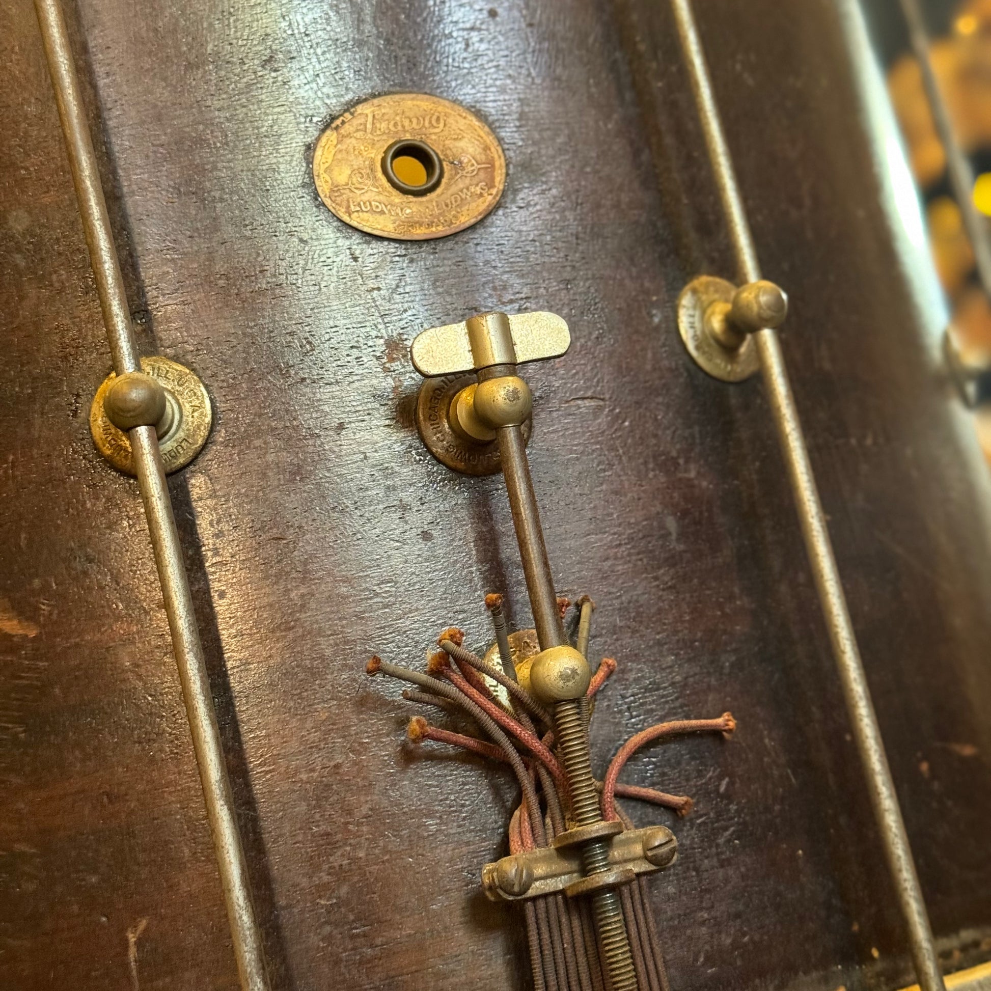 VINTAGE 1940's Ludwig & Ludwig 12x15 Marching Snare in Natural Mahogany