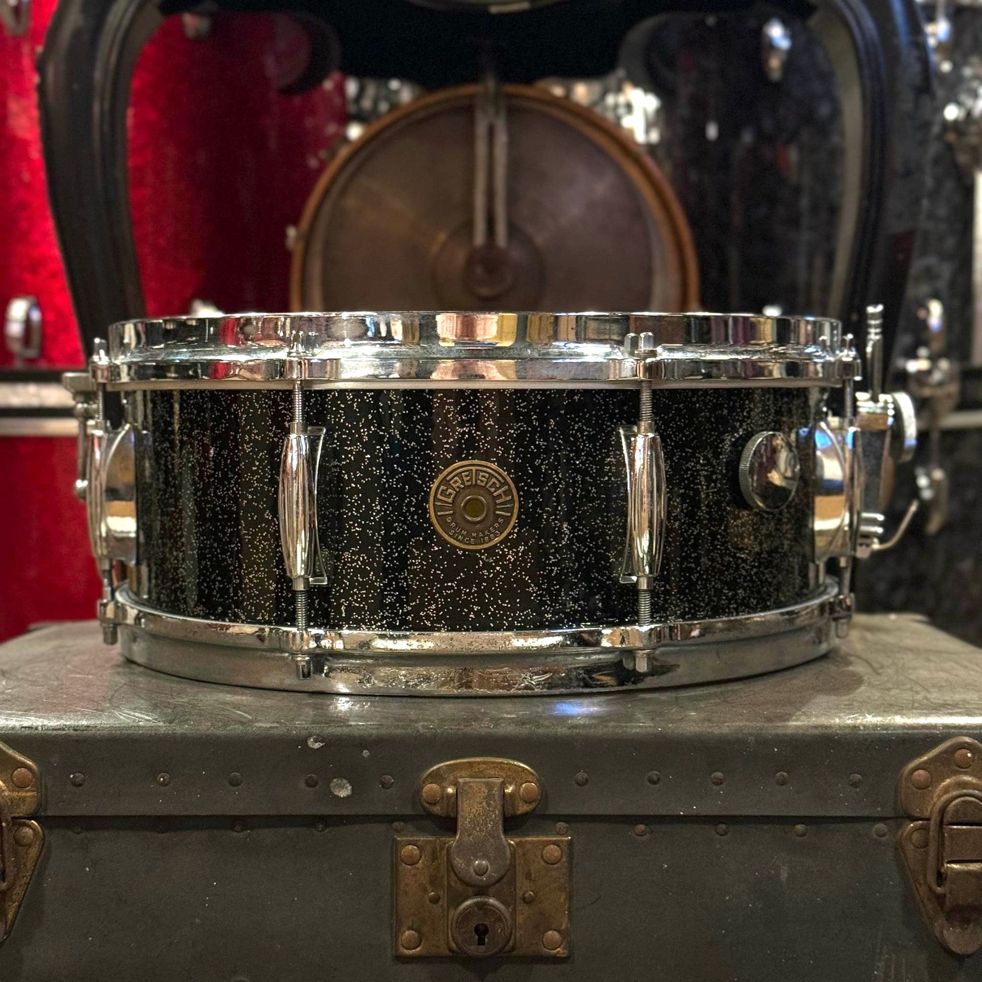 VINTAGE 1958 Gretsch Round Badge 5.5x14 Name Band Snare Drum in Anniversary Sparkle