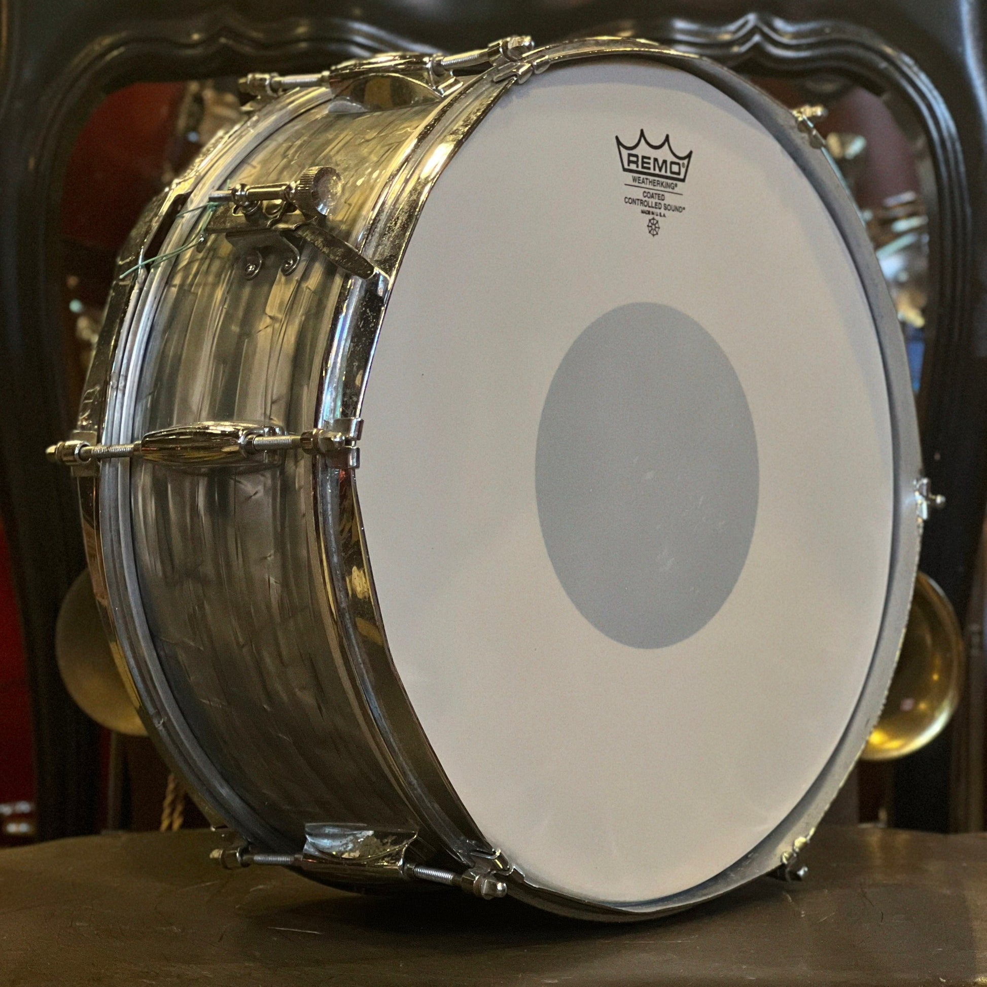 - Details & Notes: 5x14 student model Dixieland with tons of mojo in a well aged sky blue pearl. The hoops have bent over the years under the tension of the claw hooks, but the drum still tunes fine. One could always throw on modern 302 or Die Cast hoops as a replacement if so desired. Throw-off works just fine and the snare plays with tons of attitude.
