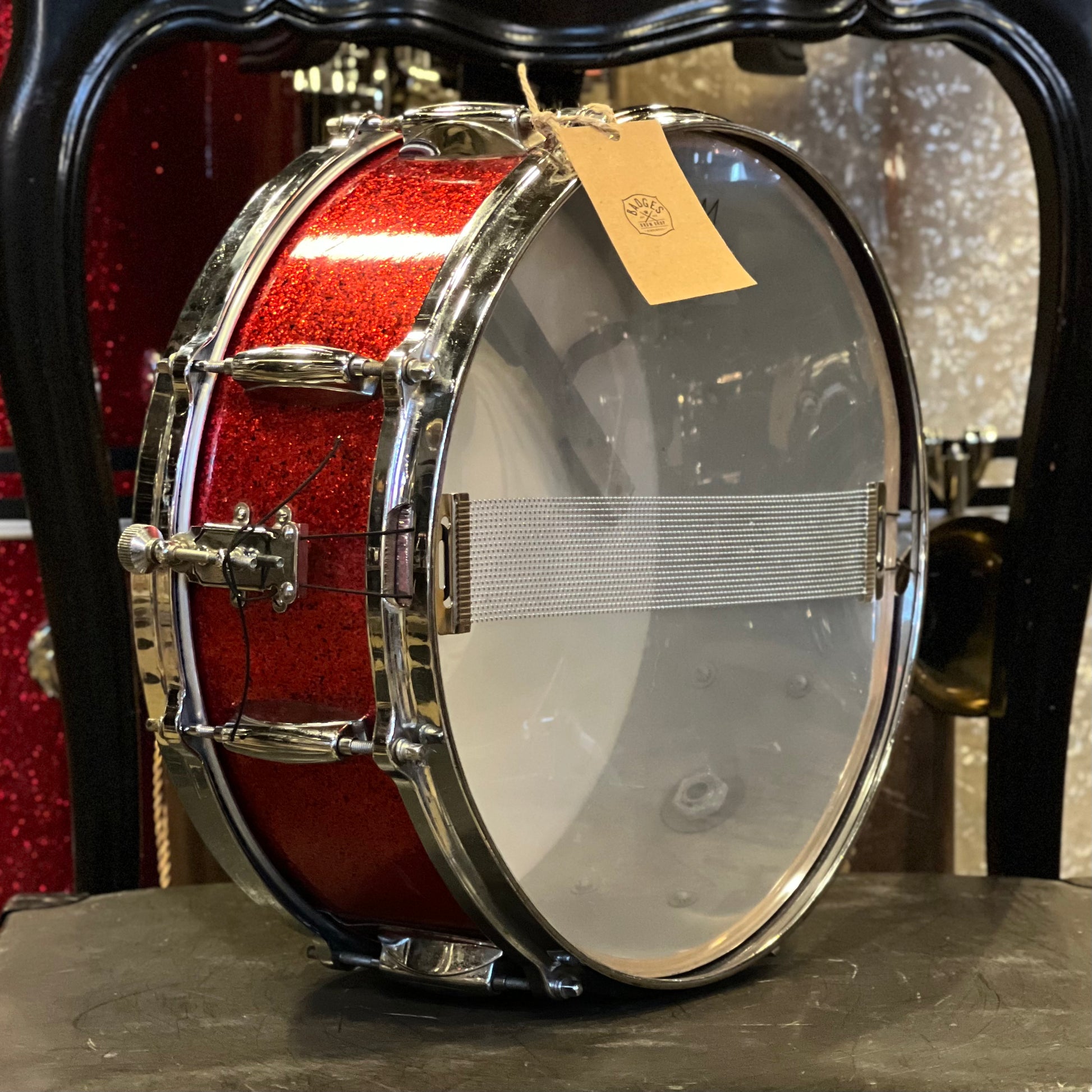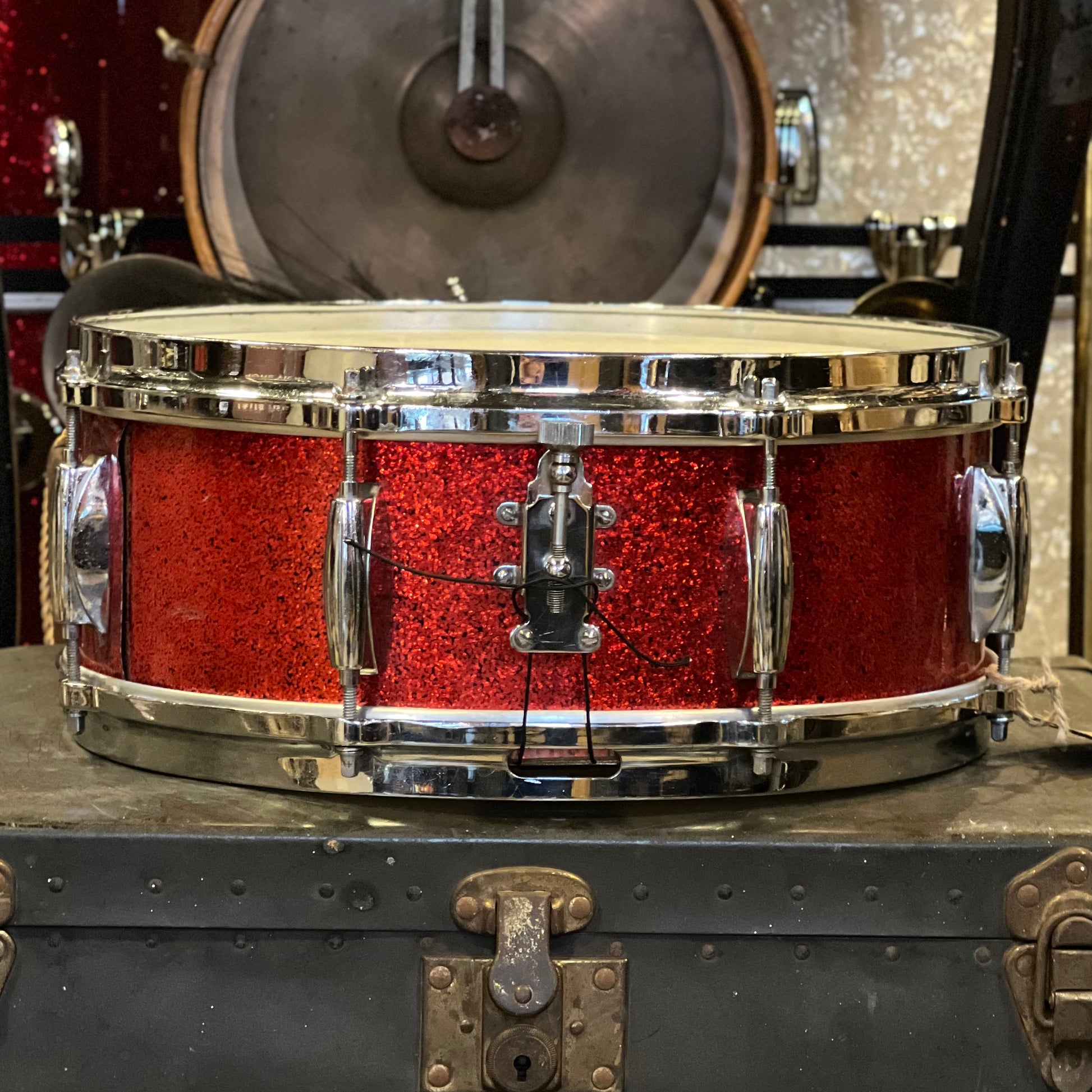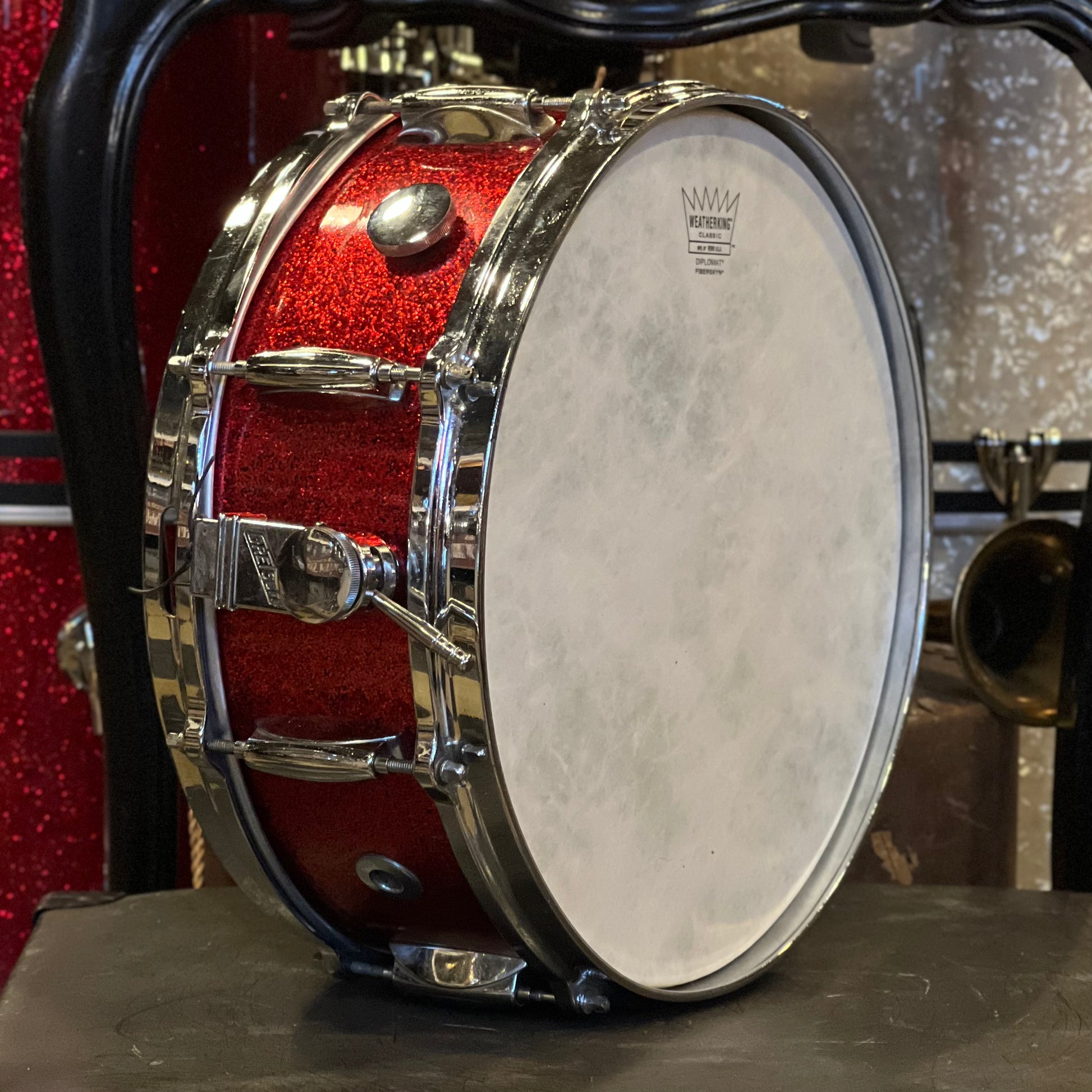 VINTAGE 1960's Gretsch Round Badge 5.5x14 Name Band Snare Drum in Red Sparkle