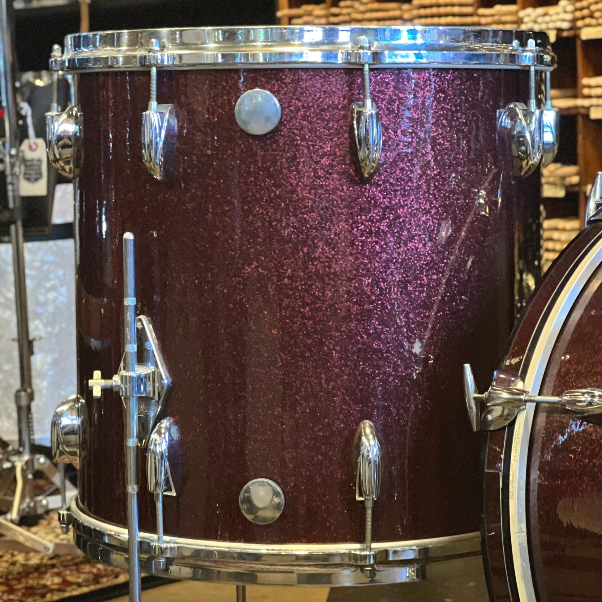 VINTAGE 1960's Gretsch Round Badge "Name Band" Outfit in Burgundy Sparkle Rewrap - 14x20, 9x13, 16x16, & 5x14