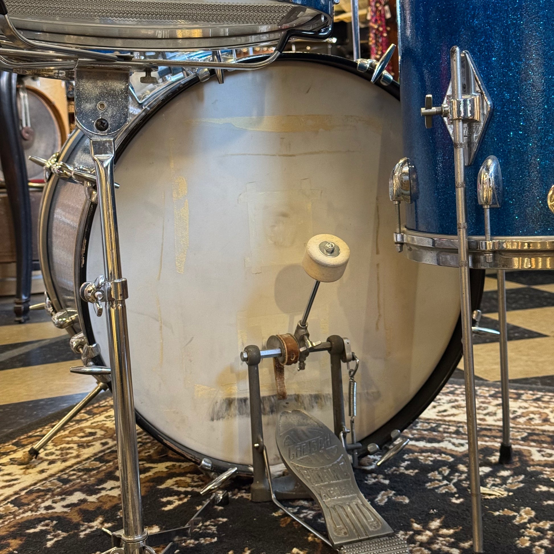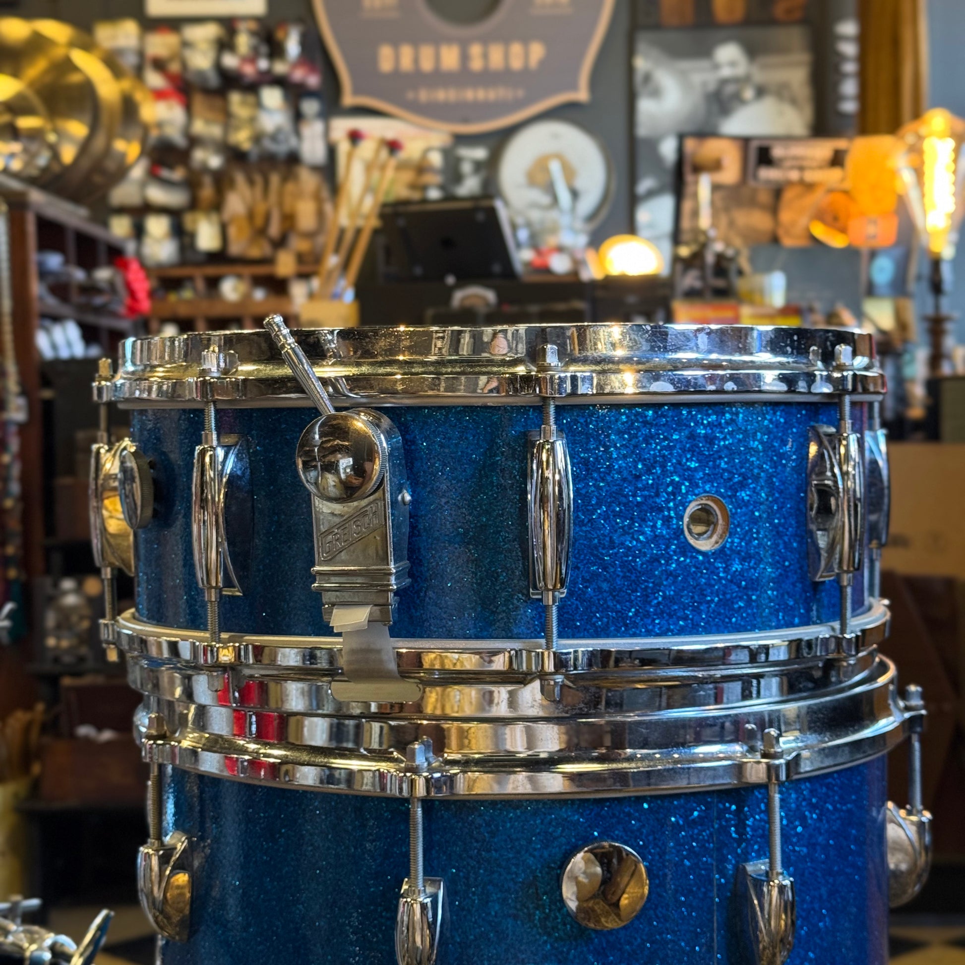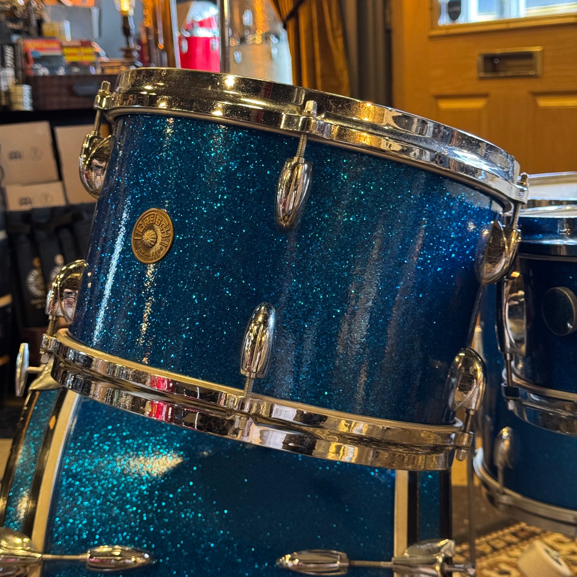 VINTAGE 1960's Gretsch Round Badge Progressive Jazz Outfit in Blue Sparkle - 14x20, 8x12, 14x14, 5.5x14