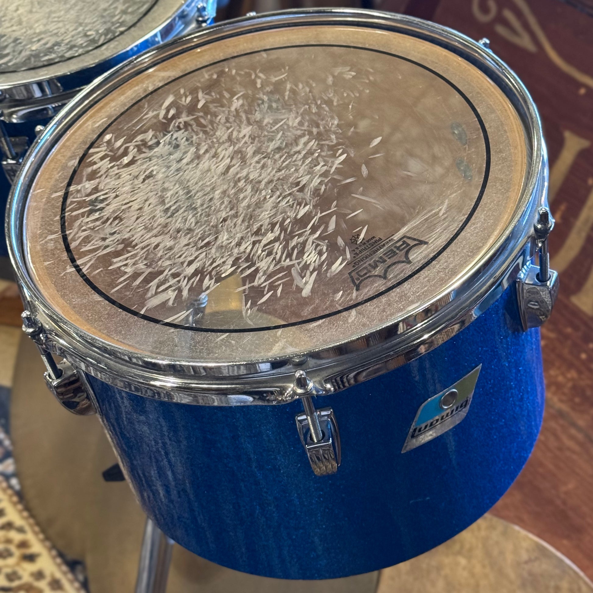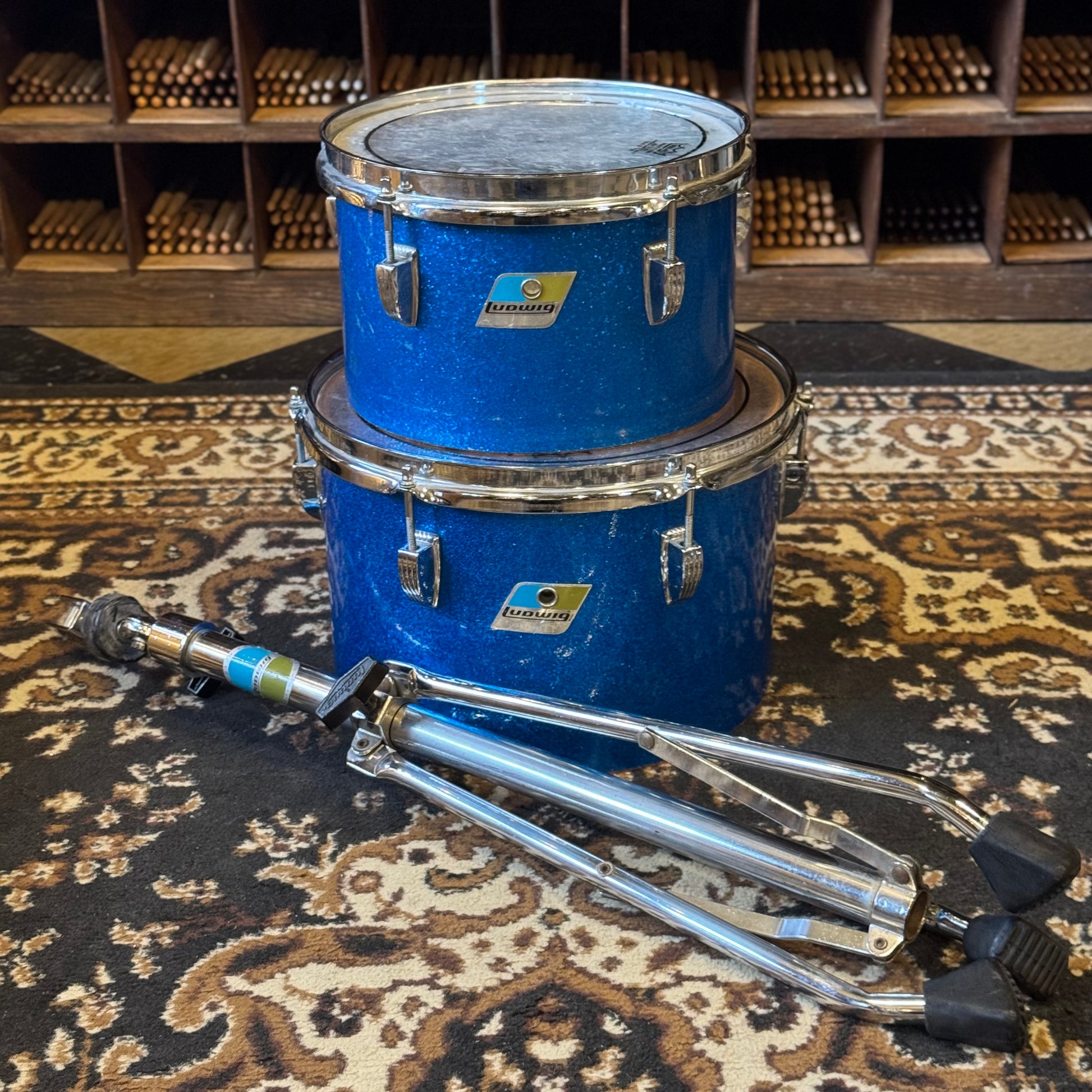 VINTAGE 1970's Ludwig Blue & Olive Badge Concert Toms in Blue Sparkle