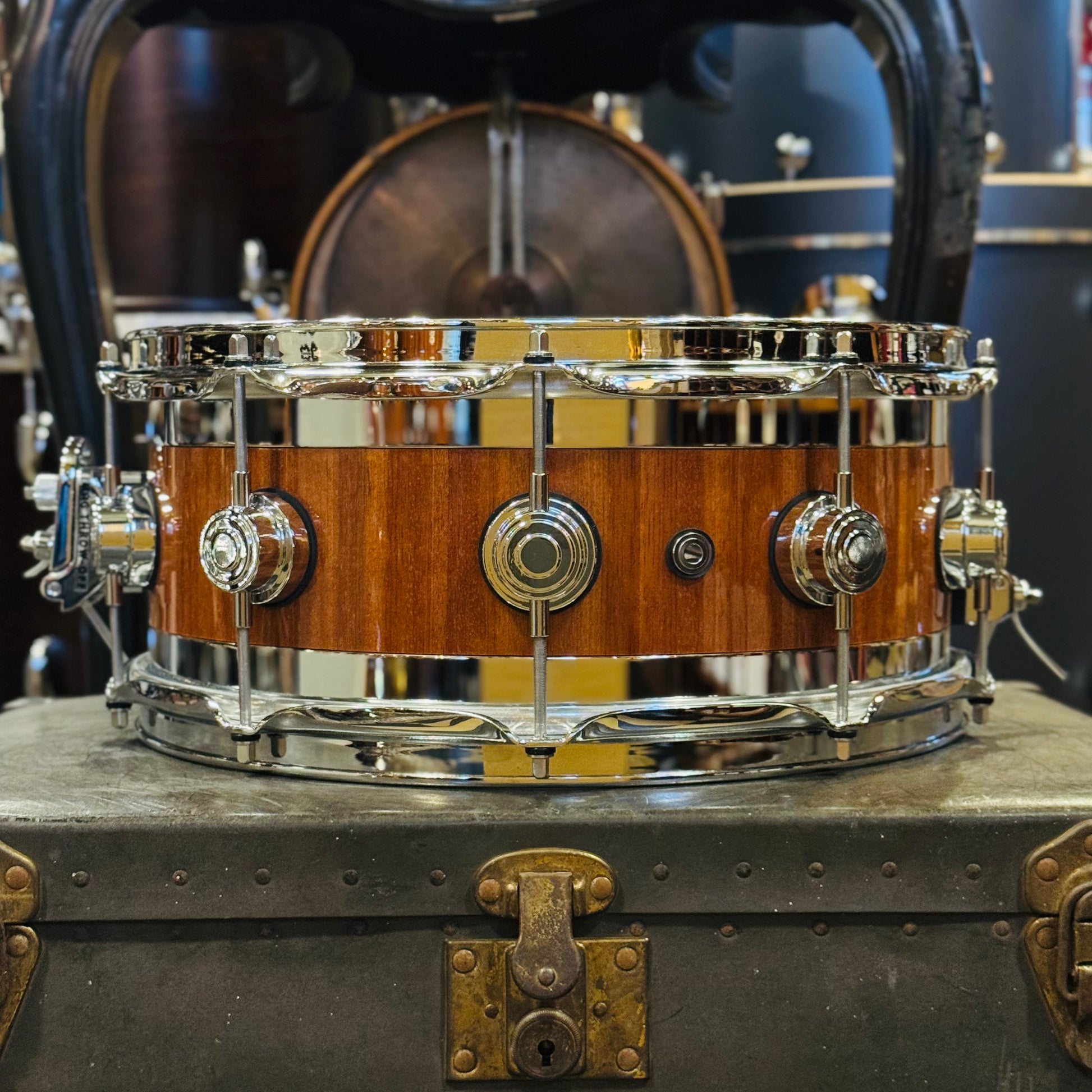 Details & Notes: DW Collectors Maple/Mahogany Edge snare drum built to match his studio kit. Excellent condition with absolute minimal wear aside from the batter head. This drum has been cherished and expertly cared for by Wally. Classic DW MAG Throw-Off and 3-Position end plate. This is an incredibly articulate and powerful drum with great sensitivity and projection. Personally owned and used by Walfredo Reyes Jr, drummer for the legendary band Chicago.